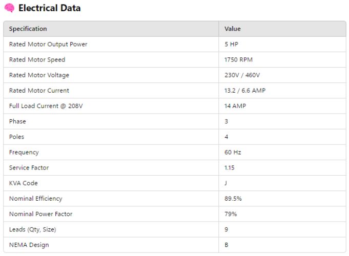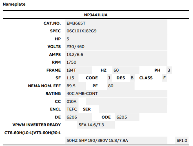 Rated Motor Output Power 5 HP