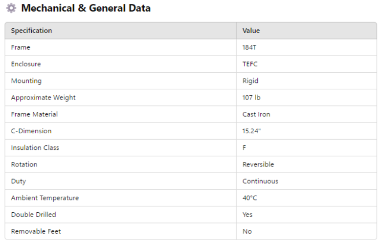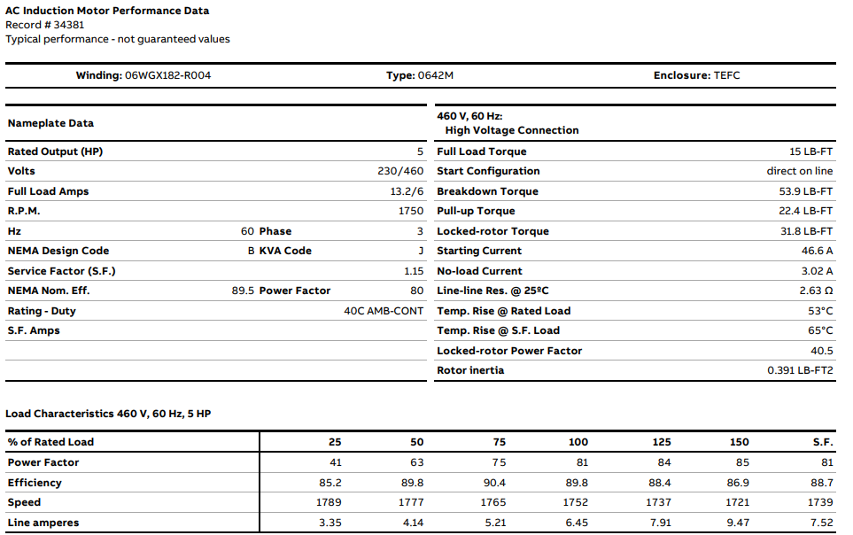 Rated Motor Speed 1750 RPM