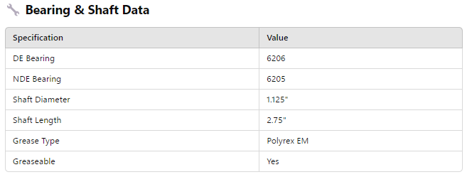 Bearing & Shaft Data