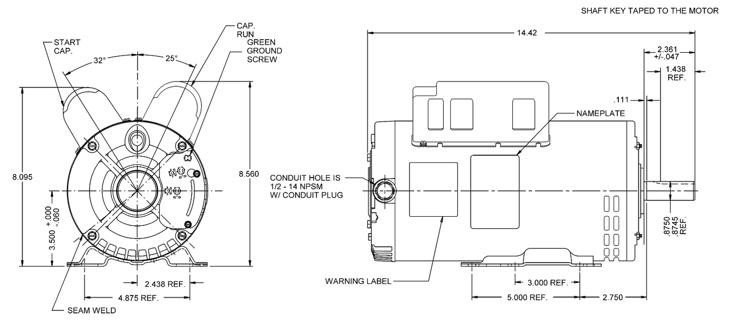 • Service Factor Amps: 10.8 / 5.7 – 5.4