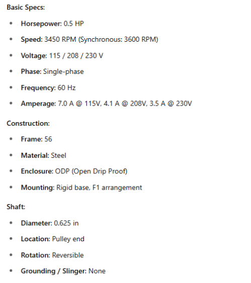 L1303,EL11303, Baldor, 1/2Hp, 3450 Rpm, 115-208/230V, Fr:56, Open drip proof,