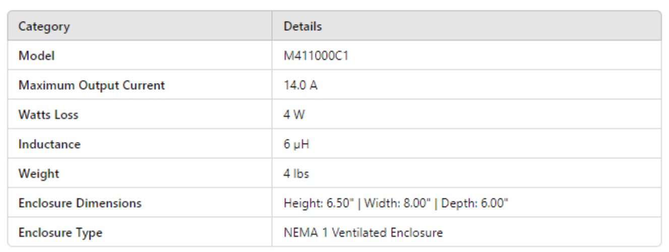 M411000C1, NEMA 1 Eclosure Suffix C1