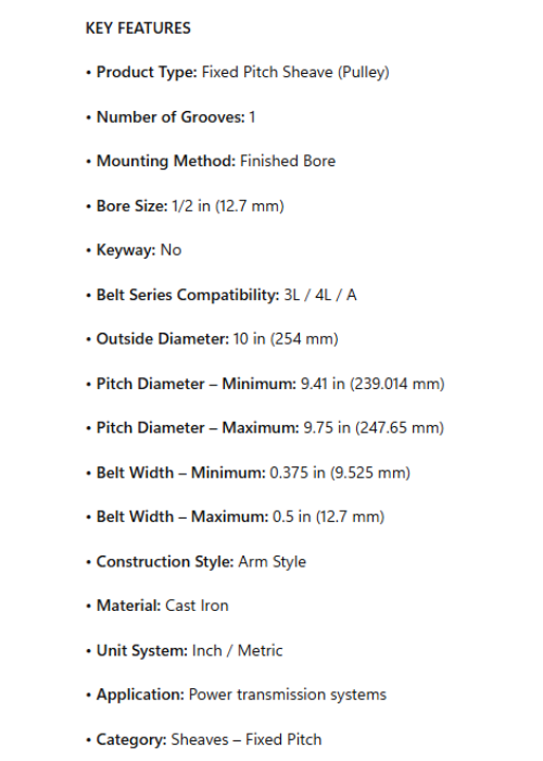 • Product Type: Fixed Pitch Sheave (Pulley)