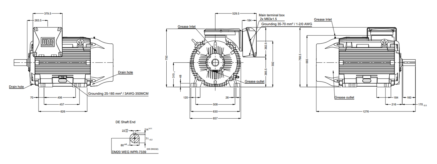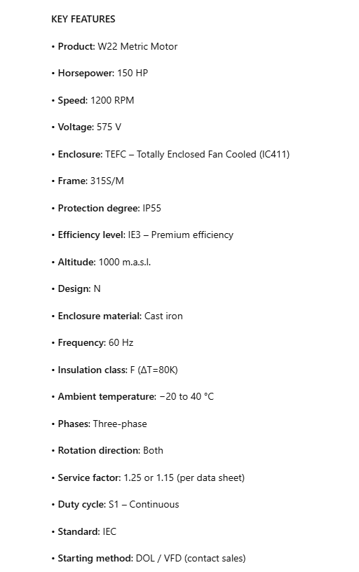ME150506W23315R01S, W22 Metric Motor, 150Hp , 1200 RPM, 575V, TEFC, Frame 315S/M , IP55, RB, IE3