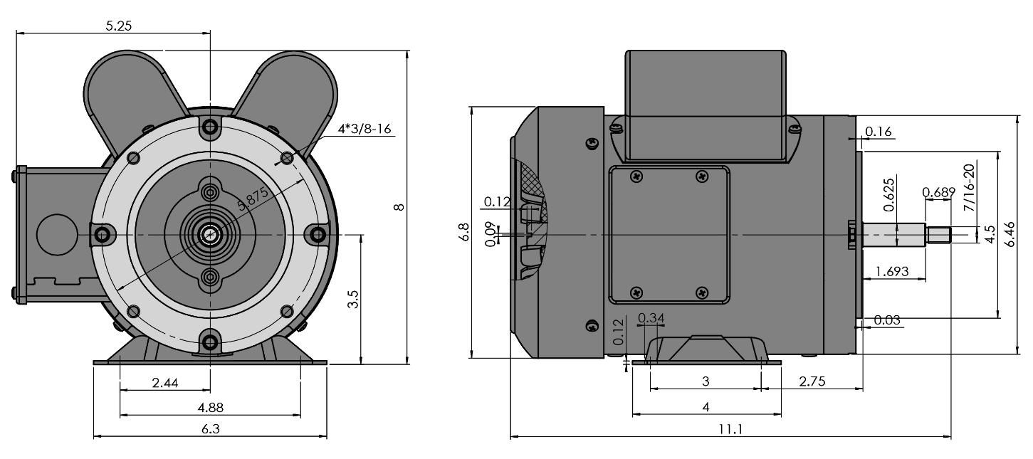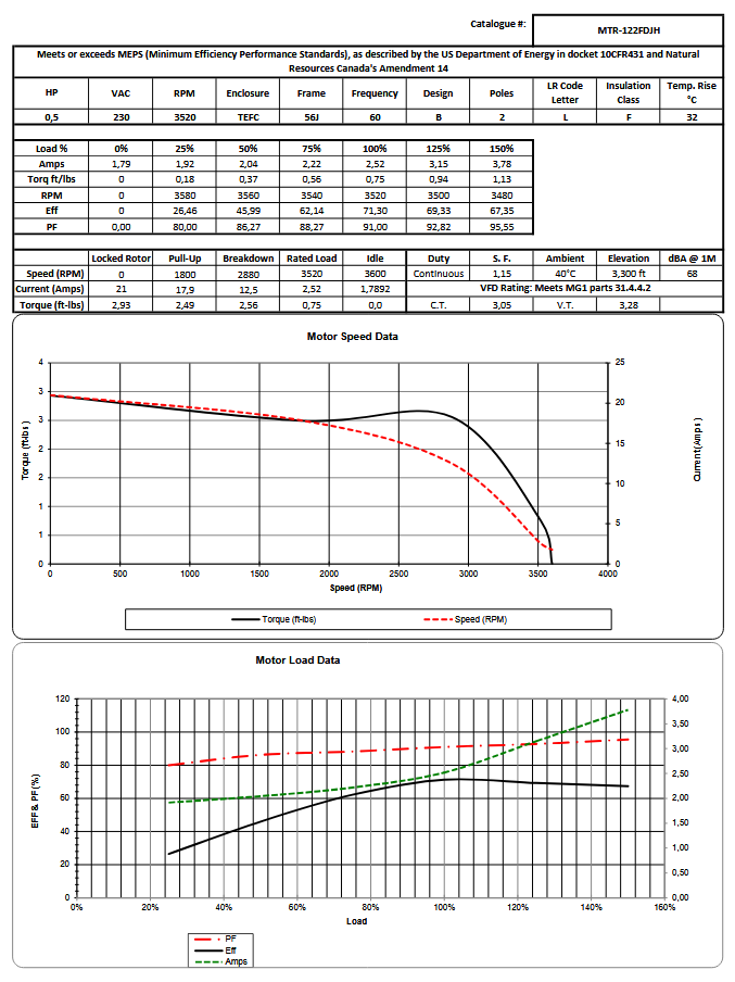 MTR-122FDJH, 1/2Hp, 3520 RPM, 115/230V, 1PH, 60Hz, TEFC, Frame 56J, IP 55
