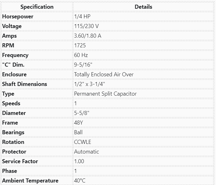 Shaft Dimensions | 1/2" x 3-1/4" |