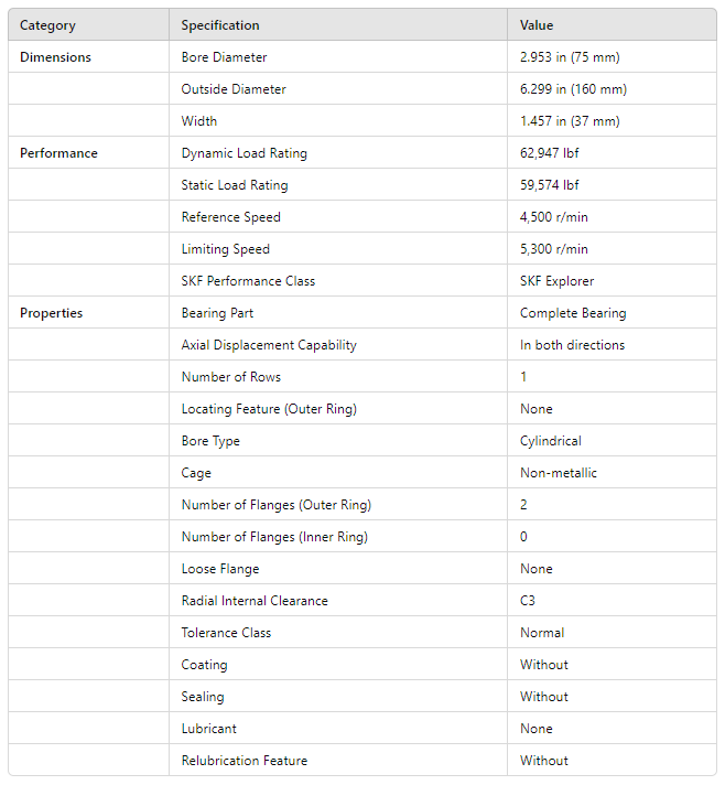 NU 315 ECP/C3, Single Row Cylindrical Roller Bearings 75x160x37mm est en rupture de stock et sera expédié dès qu’il sera de retour en stock.
