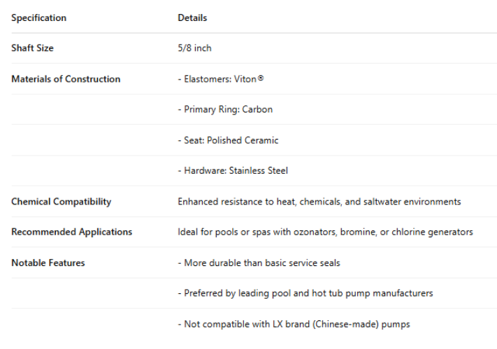 PS-3867, Pump Seal Assembly, 5/8'', Hot Tub Seal Kit Shaft Seal