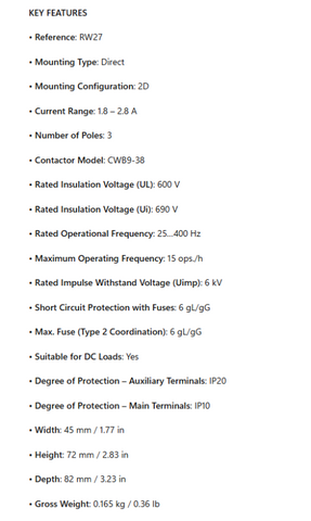 RW27-2D3-D028, Overload Relay, 3/p, 1.8-2.8A, USED ONLY FOR CWB