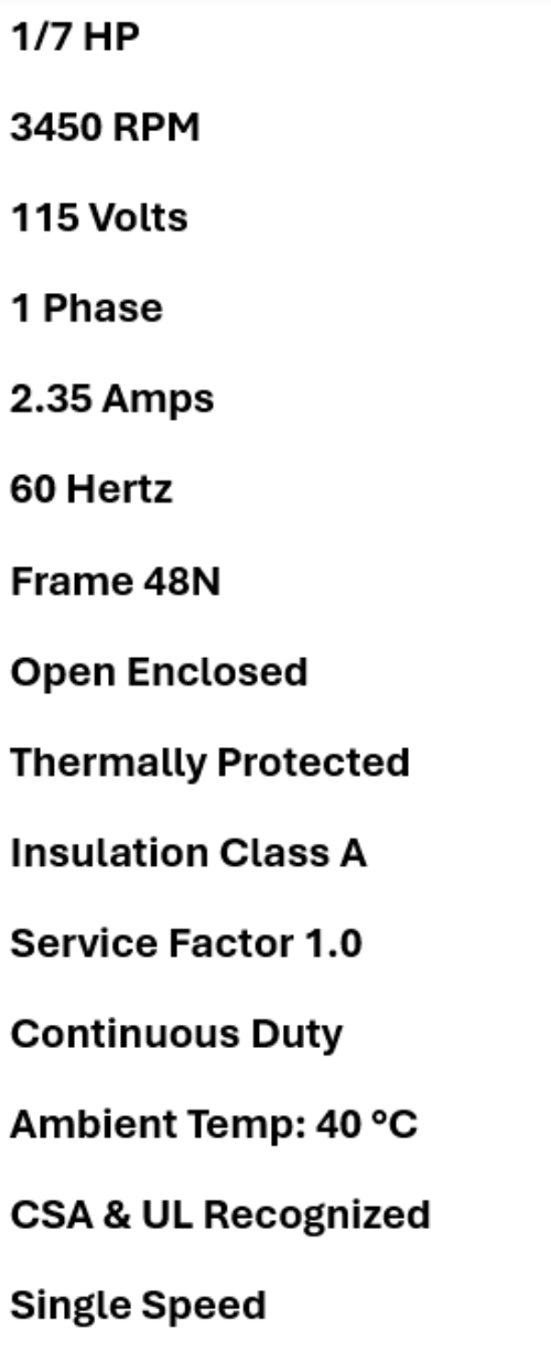 S55GYFFR-3466, Emerson, 1/7Hp, 3450 Rpm, 115 Volts, Frame: 48N, Oao,