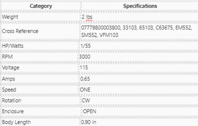 T1-R3552, Rotom, 1/55Hp, 3000 Rpm, 115 Volt, Fr: SKEL, Open enclosure, est en rupture de stock et sera expédié dès qu’il sera de retour en stock.