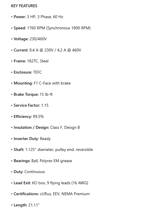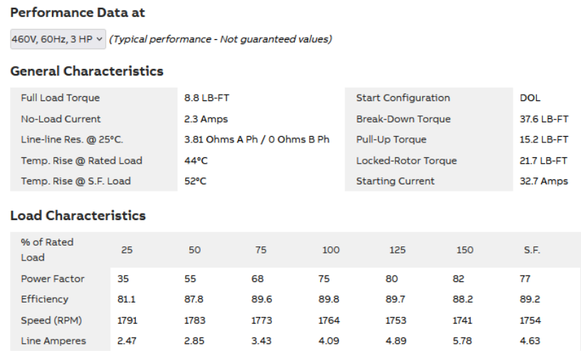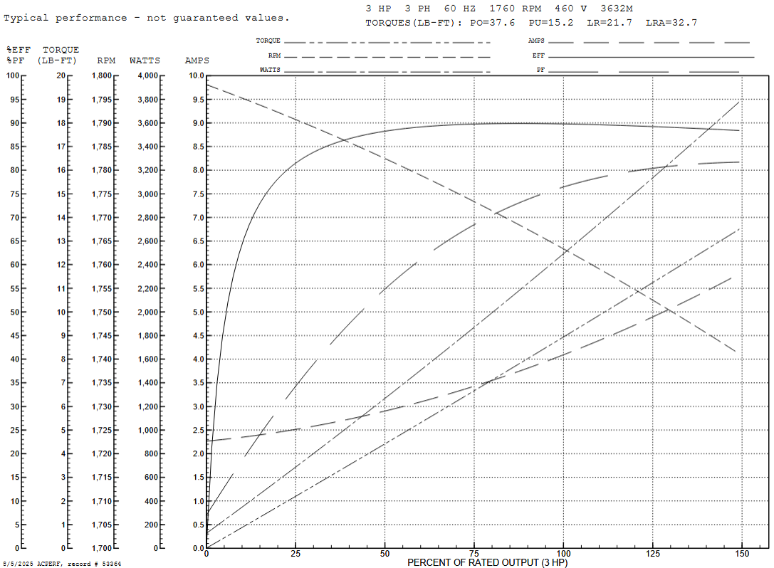 Speed: 1760 RPM (Synchronous 1800 RPM)