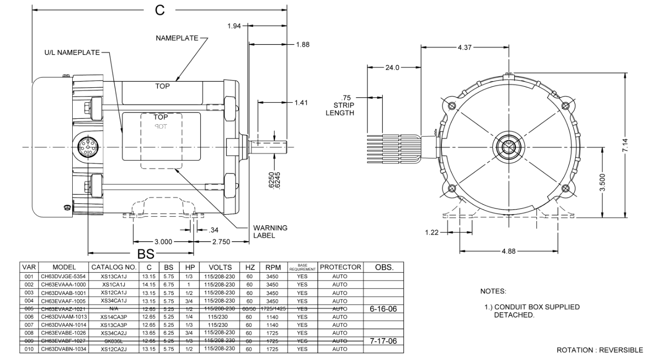 XS12CA2J, EXPLOSION PROOF, 1/2Hp, 1725 RPM, 115/208-230V, 1PH, 60Hz, EPFC, Frame 56,IP54, CH63ABN1034015B