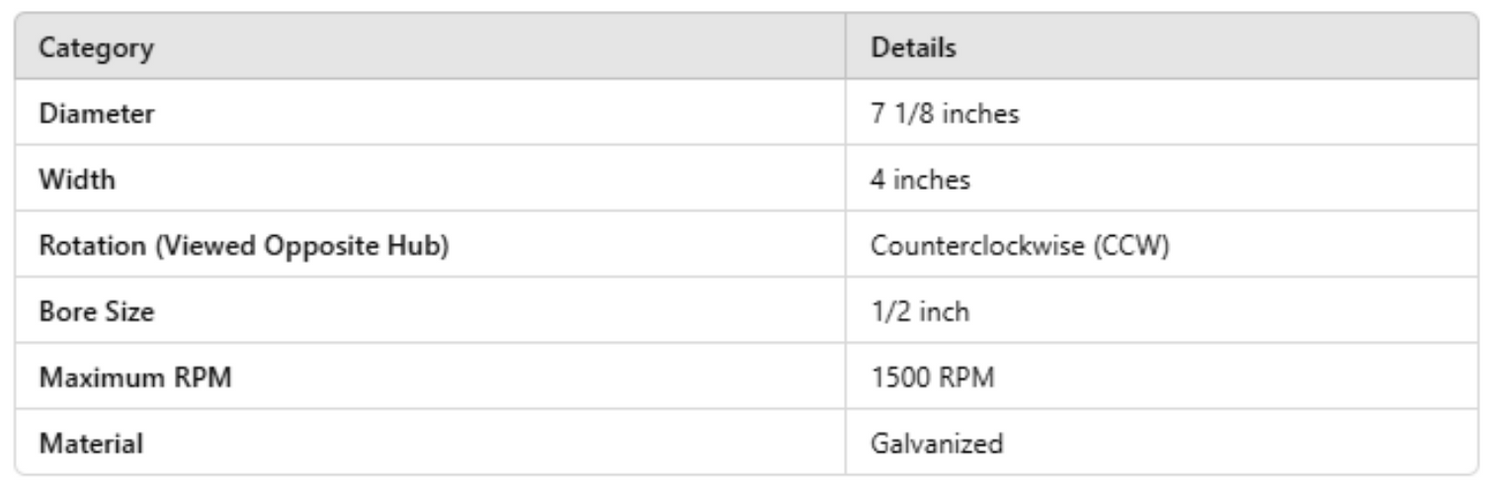 1-6005, Single Inlet Blower Wheel, 4 W, CCW, 1500 RPM