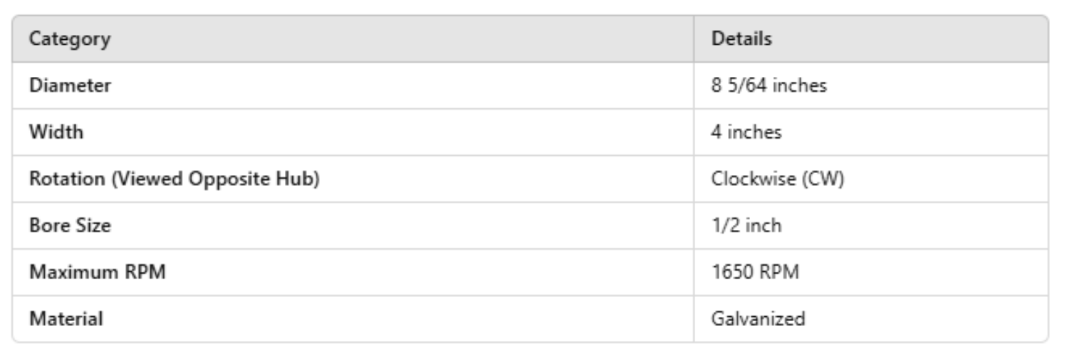Maximum RPM | 1650 RPM |
