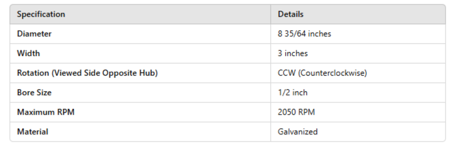 1-6077, Single Inlet Blower Wheel, 3 W, CCW, 2050 RPM
