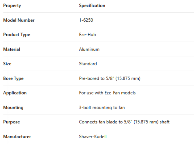 All our fans are made to be assembled using the Eze-Hub®. These hubs are taper locked upon assembly and allow for installation and removal without any damage to the fan or shaft. The hubs can be bought separately and are available in a variety of metric or standard bore sizes to satisfy your customers needs.