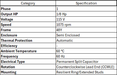 Output HP | 1/8 Hp |
