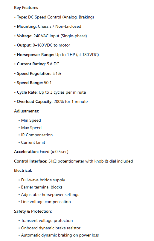 • Horsepower Range: Up to 1 HP (at 180 VDC)