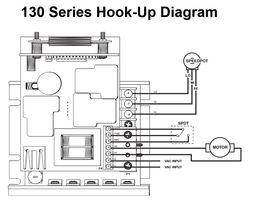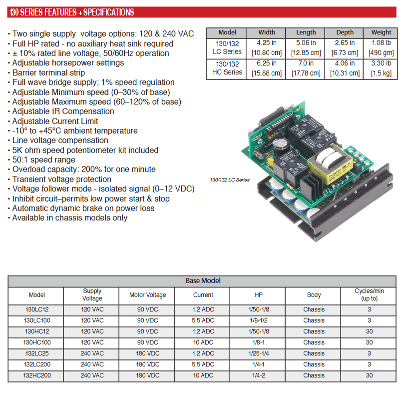 132LC200, 130 SERIES VARIABLE SPEED DC CONTROL 180VDC, 5A, Braking, 3C/min, 240VAC In to 1Hp; CHASSIS