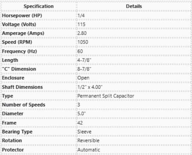 1390, Us Motors,1/4Hp,1075 Rpm,115V,Fr:42Y,K048STZ3519012B,F42E61A13