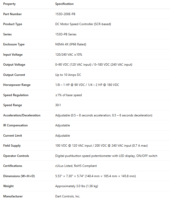 153D-200E-PB, 153D-PB Series 1/8Hp-2Hp 90-180VDC Digital Pot Led Display Non-Reverse Ip66/Nema4x is backordered and will ship as soon as it is back in stock.