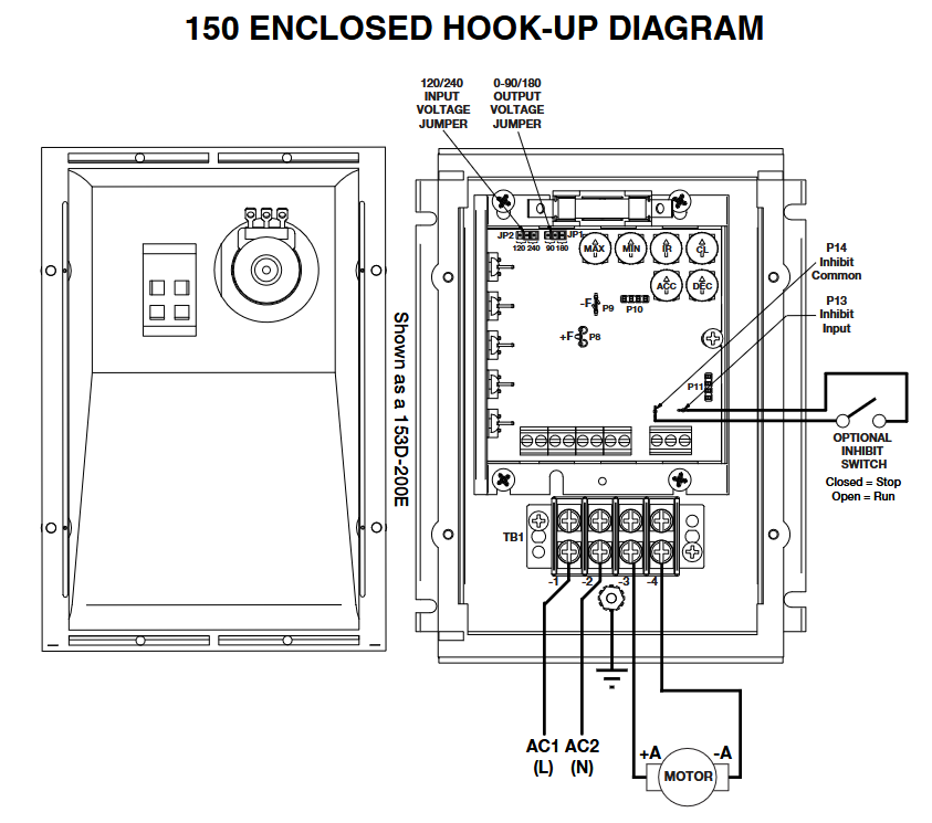 153D-200E-PB, 153D-PB Series 1/8Hp-2Hp 90-180VDC Digital Pot Led Display Non-Reverse Ip66/Nema4x