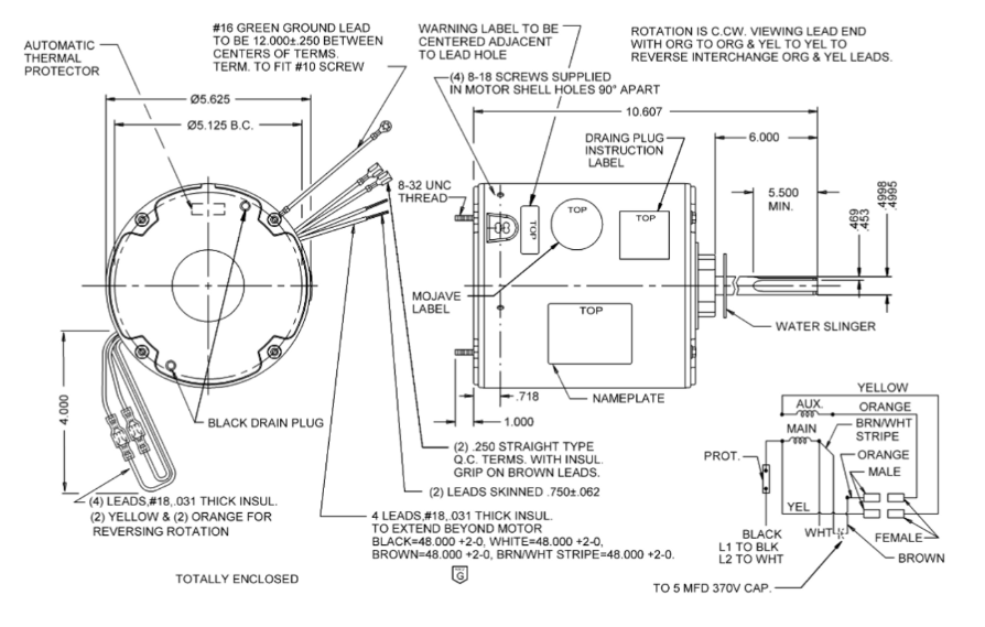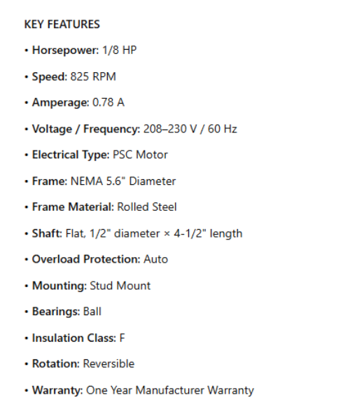 1872H, 1/8Hp 825 RPM 208-230V 5.6" Dia. (No Base) 1-Speed TEAO Condenser Motor