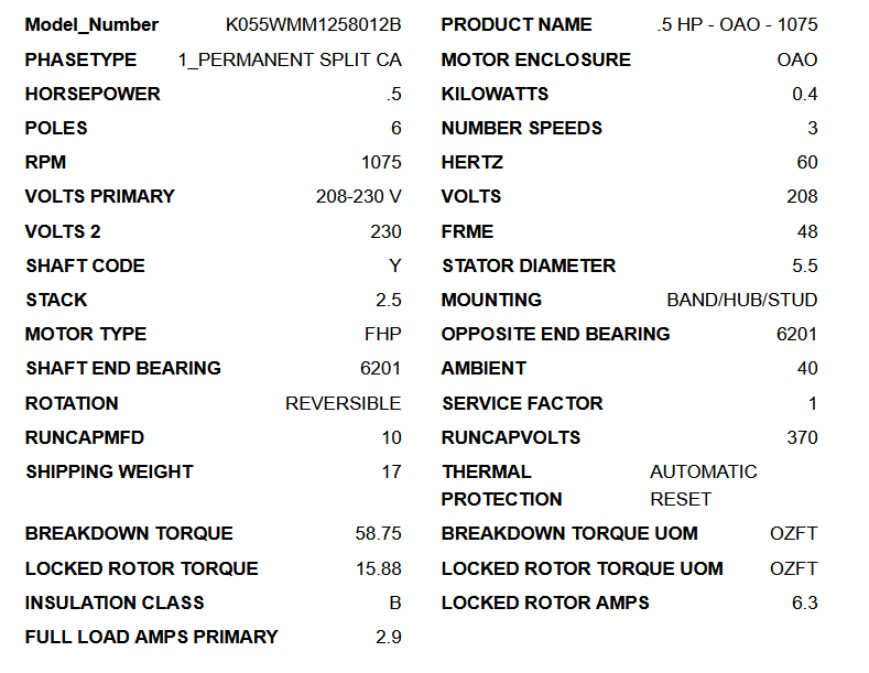 • Locked Rotor Amps: 6.3 A