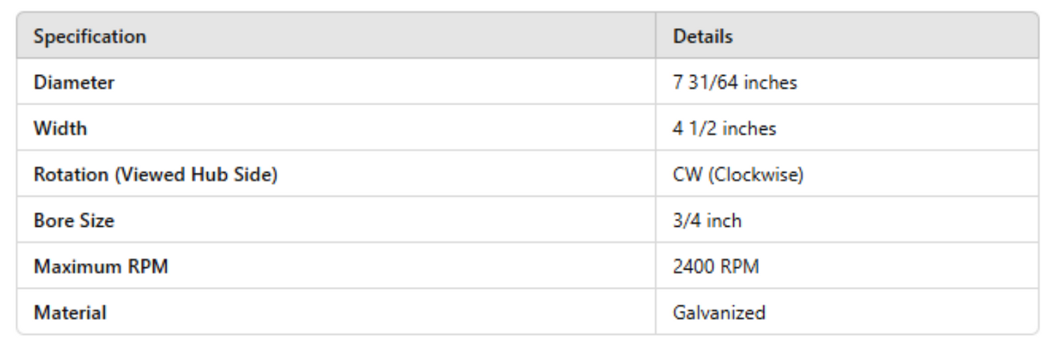 2-6035, Double Inlet Blower Wheel, 4 1/2 CW, 2400 RPM