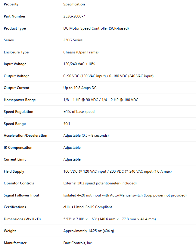 253G-200C-7, Chassis 120-240VAC(i/p), 90-180VDC(o/p), 1/4-2HP, Option-7 is backordered and will ship as soon as it is back in stock.