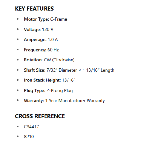 34417000, OEM Replacement, 1.0 amps, 120V, 60hz is backordered and will ship as soon as it is back in stock.