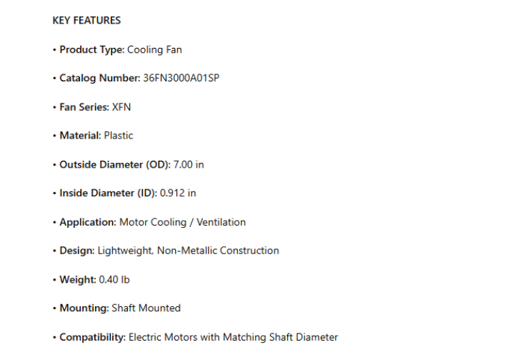 36FN3000A01SP, Plastic Cooling Fan, 7.00" OD, 0.912" ID