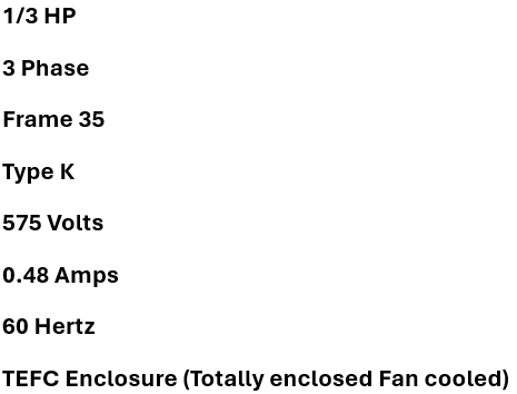3J133FA5, CGE Canada, 1/3Hp, 3450 Rpm, 575 Volts, Frame: 35 Tefc,