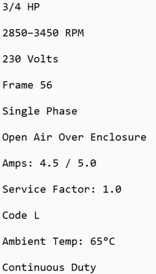 5KC47NG1509T, General Electric, 3/4Hp, 3450 Rpm, 230V, Frame:56, Oao,
