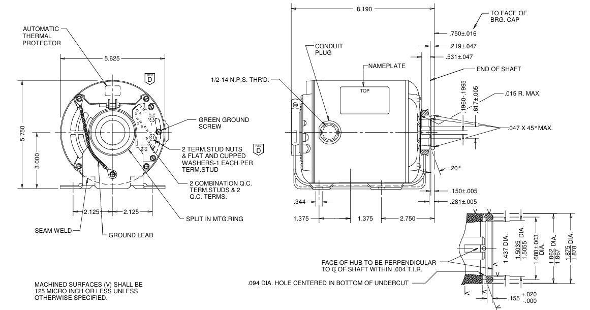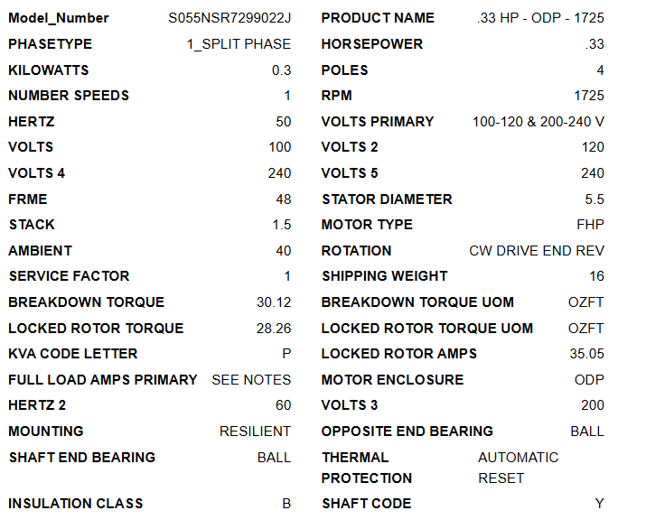 6079, 1/3Hp 1725RPM 110-120/200-240/1/60-50 ODP 48 Carbonator Pump Motor REISLIENT BASE 1.0SF