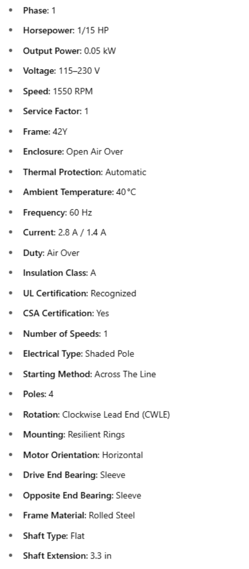 DA2E110, Magnetek, 1/15Hp, 1550 Rpm, 115-230V, frame: 42Y, OAO,