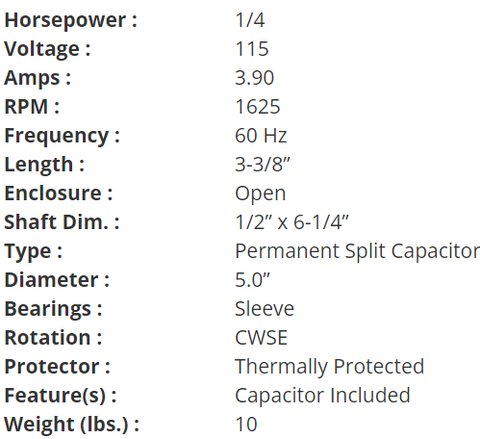 615058, Loren Cook, 1/4Hp, 1625 Rpm, 115 Volts, Enclosure Open,