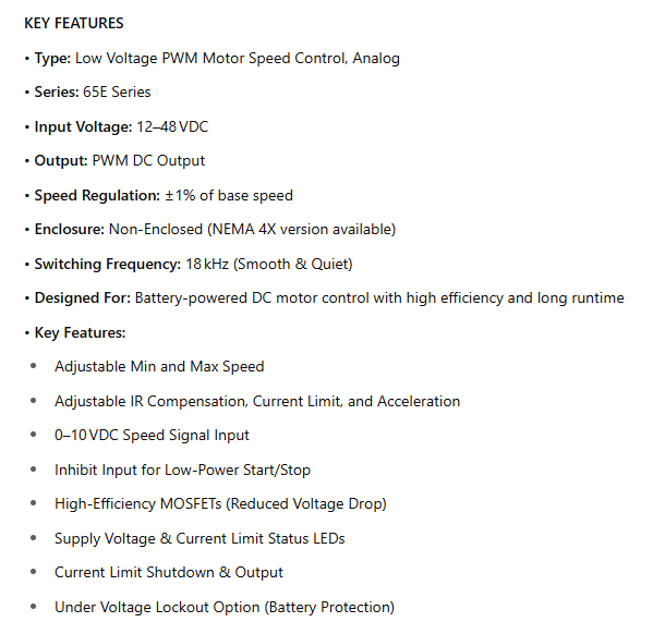 • Type: Low Voltage PWM Motor Speed Control, Analog