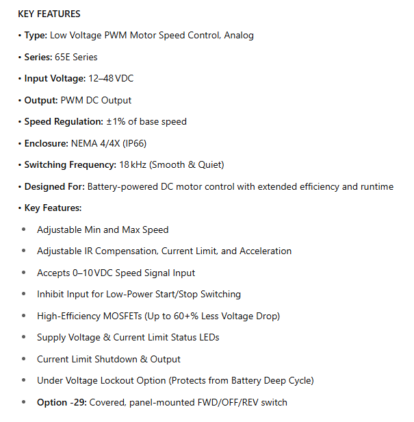 • Type: Low Voltage PWM Motor Speed Control, Analog