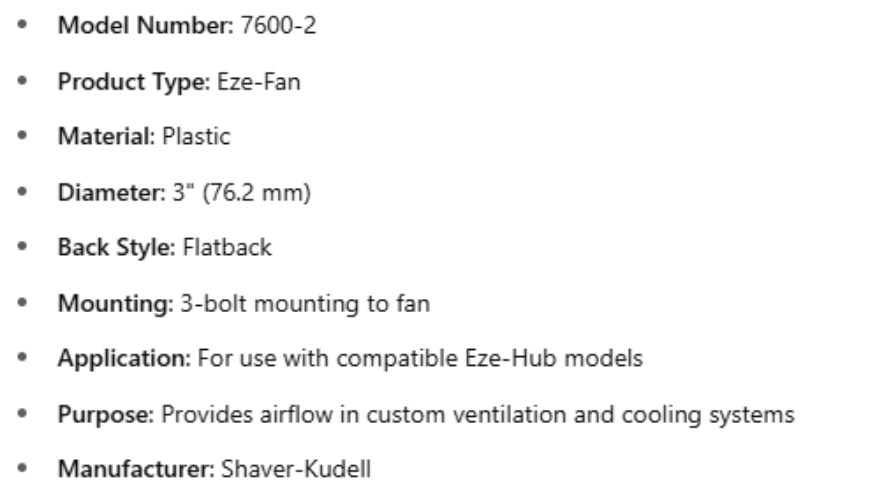 Purpose: Provides airflow in custom ventilation and cooling systems