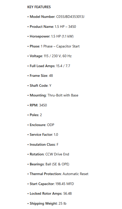 • Product Name: 1.5 HP – 3450