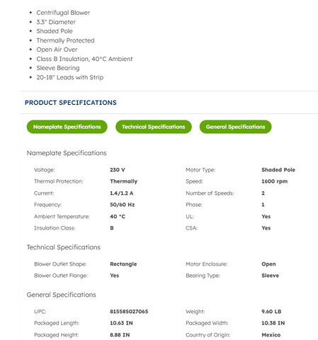 Voltage: | 230 V | Motor Type: | Shaded Pole |