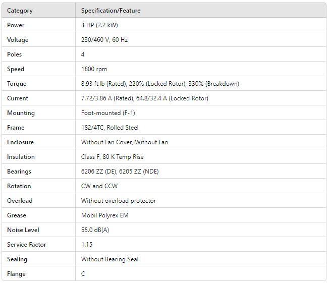 CP003404NPW01, Rolled Steel NEMA Premium Efficiency 3Hp 1765 Rpm 4P 182/4TC 3Ph 230/460//190-220/380-415 V 60 Hz IC01 - ODP - Foot-mounted is backordered and will ship as soon as it is back in stock.