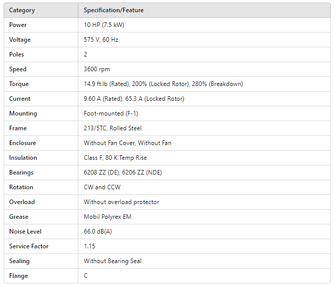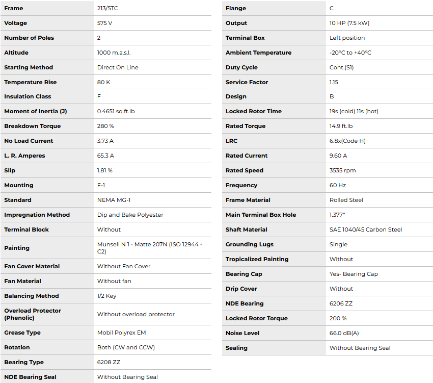CP010502NPW01, Rolled Steel NEMA Premium Efficiency 10Hp 3535 Rpm 2P 213/5TC 3Ph 575 V 60 Hz IC01 - ODP - Foot-mounted