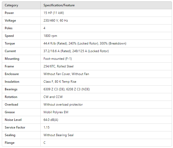 CP015404NPW01, Rolled Steel NEMA Premium Efficiency 15Hp 1775 Rpm 4P 254/6TC 3Ph 230/460//190-220/380-415 V 60 Hz IC01 - ODP - Foot-mounted is backordered and will ship as soon as it is back in stock.