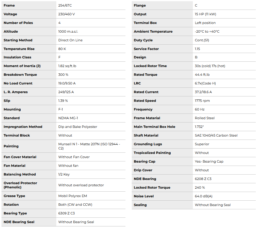 CP015404NPW01, Rolled Steel NEMA Premium Efficiency 15Hp 1775 Rpm 4P 254/6TC 3Ph 230/460//190-220/380-415 V 60 Hz IC01 - ODP - Foot-mounted