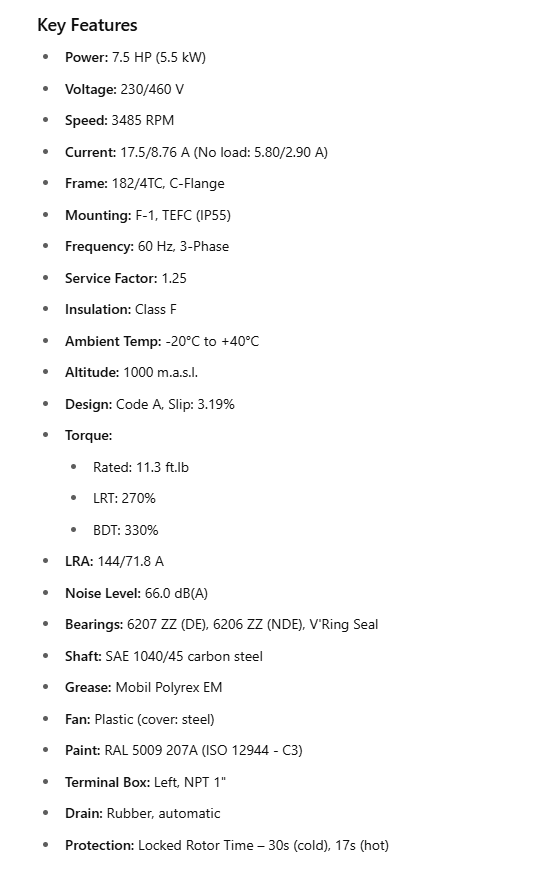 Frequency: 60 Hz, 3-Phase
