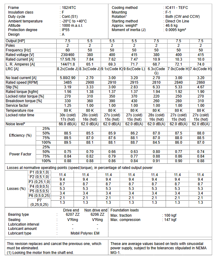 CT007402NPW22184T, W22 NEMA Premium Efficiency 7.5Hp 3485 RPM 2P 182/4TC 3Ph 208-230/460//380 V 60//50 Hz IC411 - TEFC - Foot-mounted