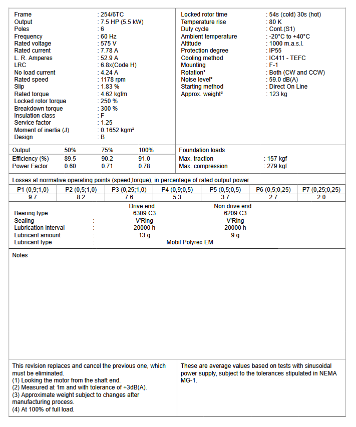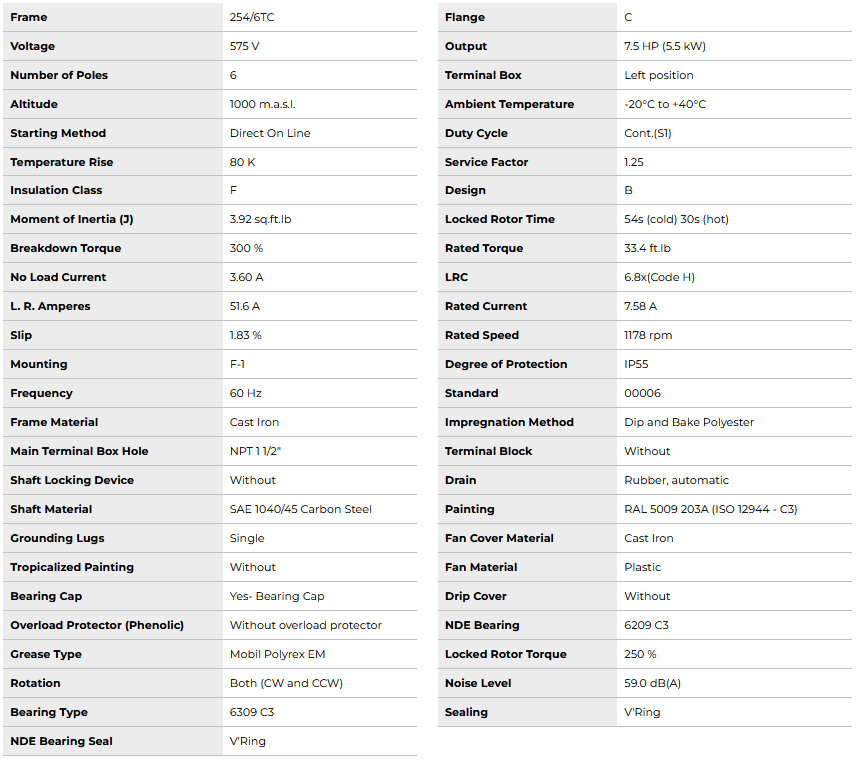 • Bearings: 6309 C3 (DE), 6209 C3 (NDE), V'Ring Seal